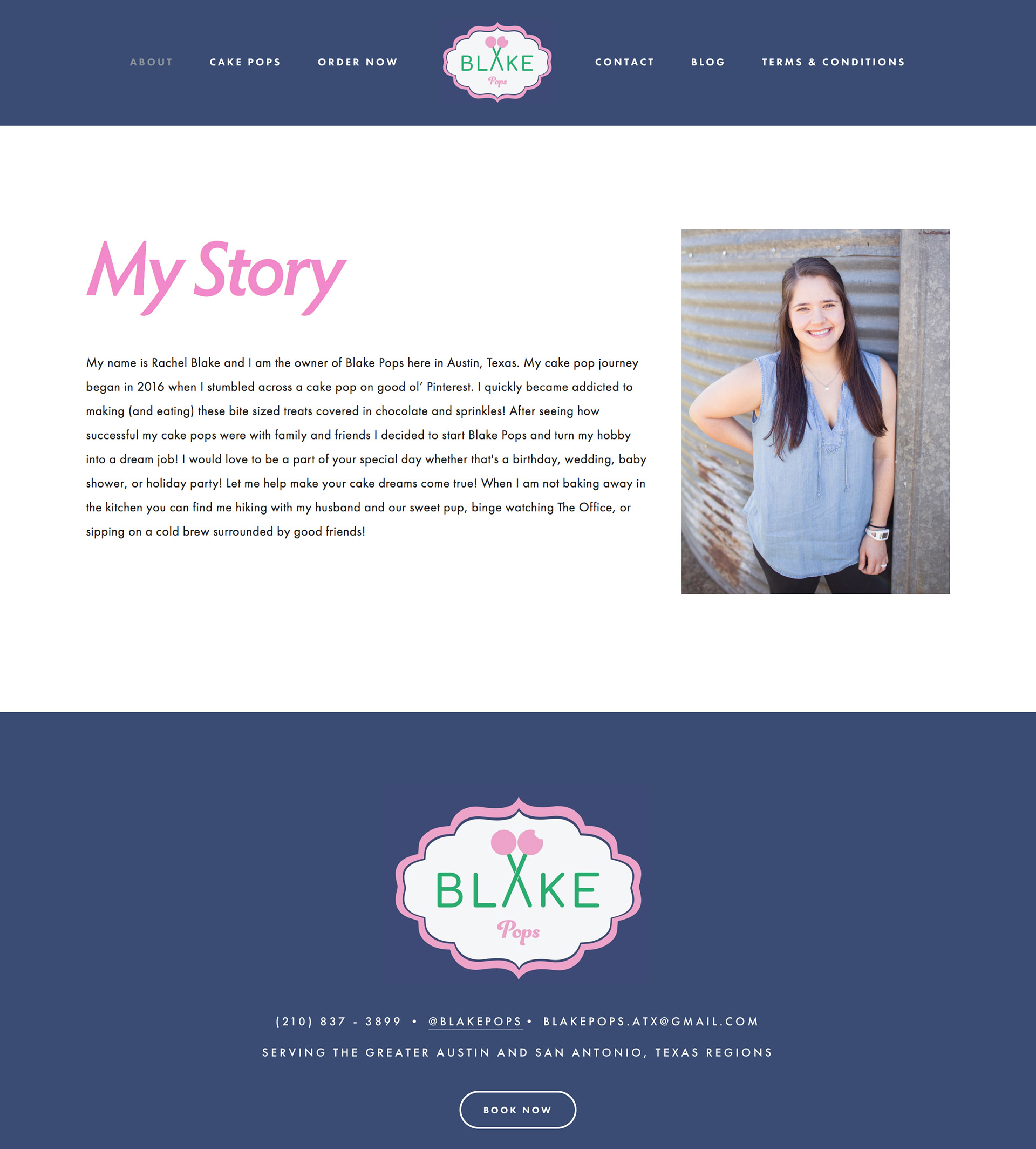 Logo design for small business owner, Rachel Blake. Rachel creates delicious and beautifully crafted cake pops and requested a logo that represents her business. The Name and logo design is a combination of her last name—Blake and the word cake.